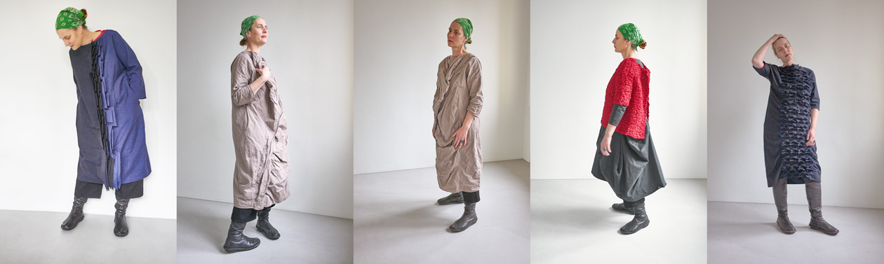 Materiali e procedimenti mi hanno portato negli anni a proporre "costruzioni tessili" ispiranti. Oggi tutte le fantasie e i pensieri stratificatisi nella mia mente e tutti gli schizzi che affollano i miei taccuini hanno preso forma.