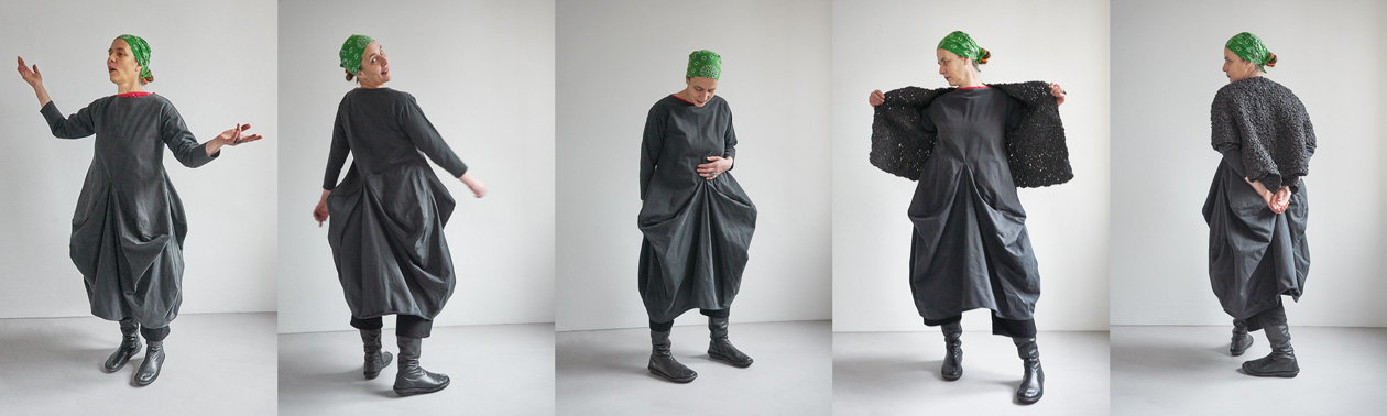 L'ABITO è la forma, ma un abito che vuole riappropriarsi del suo valore in sé, del suo valore estetico di OGGETTO-ABITO. Svincoladosi dalla sua funzione e dalla costante necessità di dialogare con il corpo recupera una straordinaria forza espressiva. una sorta di catarsi.